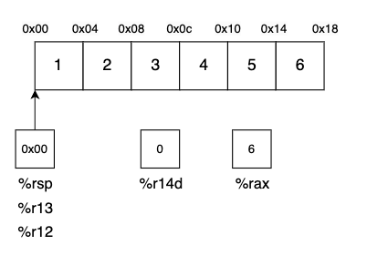 %rax는 배열을 첫번째 요소에서 마지막 요소까지 순회합니다.