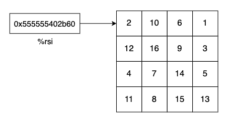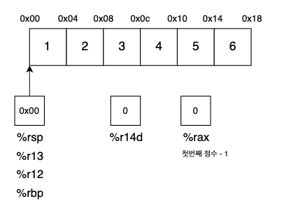 %rsi는 0으로 고정입니다. 즉 %ecx는 0번째 숫자입니다.