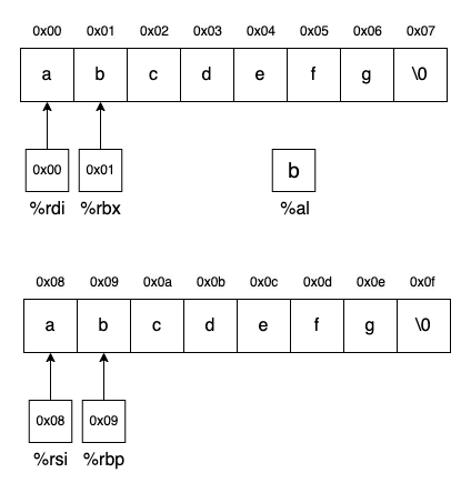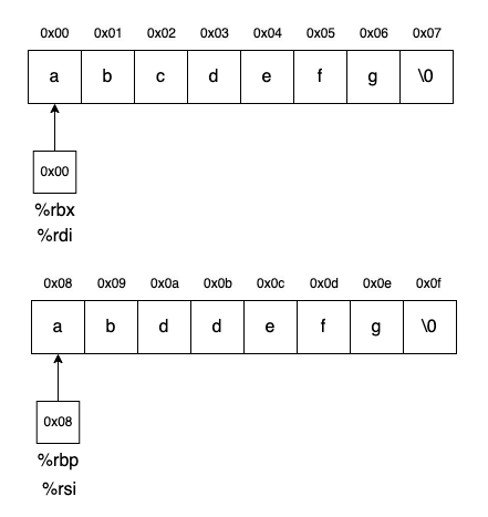 : 8바이트 단위로 옮겨서 배열이 저장되는 위치에서 0x20 떨어진곳에 %rdx가 가리키는값 저장.