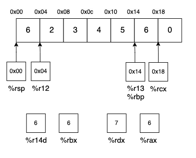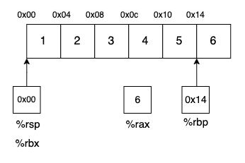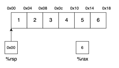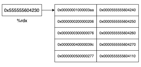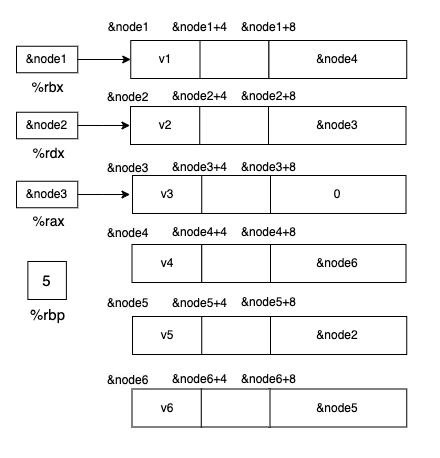 예를들어, node1에서 5번 이동하면 %rdx는 node6 주소를 값으로 가집니다.