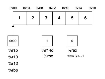 - read_six_numbers는 반환값으로 입력한 정수의 개수를 반환한다. 더 자세히 말하면 read_six_numbers는가 %rax에 저장하지 않으므로, __isoc99_sscanf 함수가 %rax에 입력한 정수의 개수를 반환합니다.
